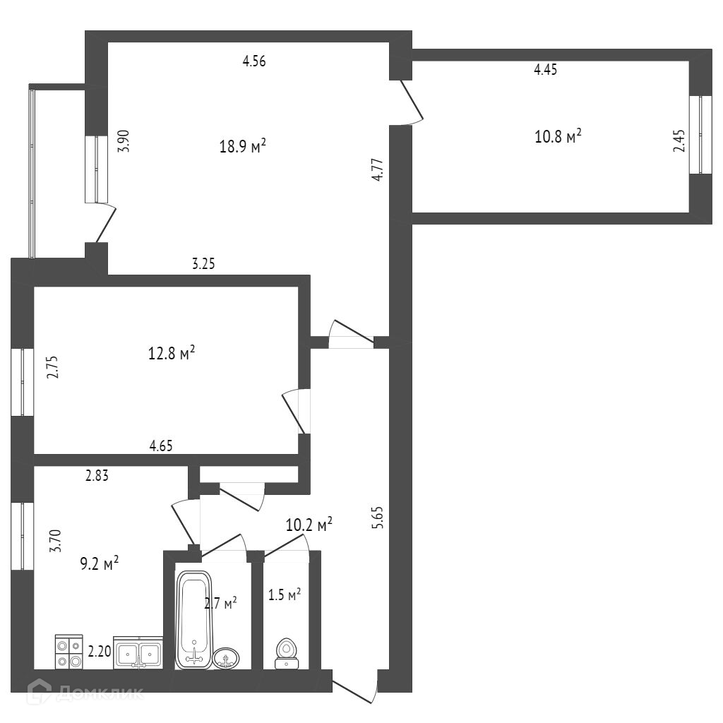 Общая площадь 66.8 м2