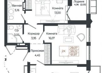 Общая площадь: 62 м2