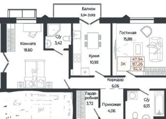 Общая площадь: 92.1 м2