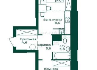 Продам 1-ком. квартиру, 53.7 м2
