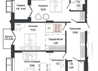 Общая площадь: 86.7 м2