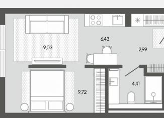 Квартира на продажу студия, 40.5 м2