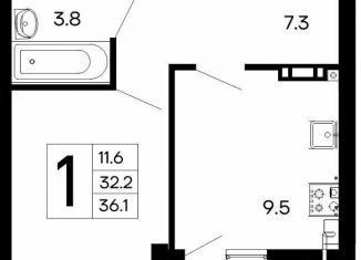 Однокомнатная квартира на продажу, 36.1 м2