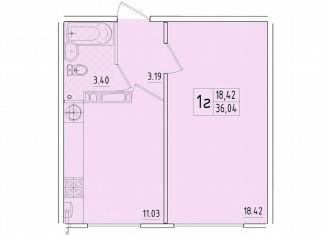 Однокомнатная квартира на продажу, 40.7 м2