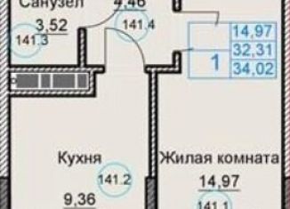Однокомнатная квартира на продажу, 32.3 м2