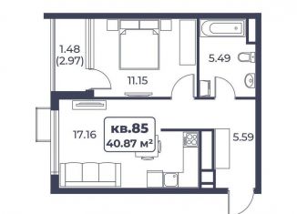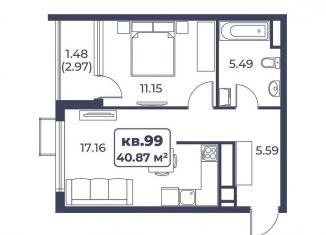 Продам 1-комнатную квартиру, 40.8 м2, улица Сергеева-Ценского
