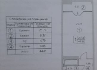 Продаю однокомнатную квартиру, 44.4 м2, Набережная улица, 75к1
