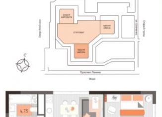 Продается 1-комнатная квартира, 37.8 м2, проспект Ленина, 60