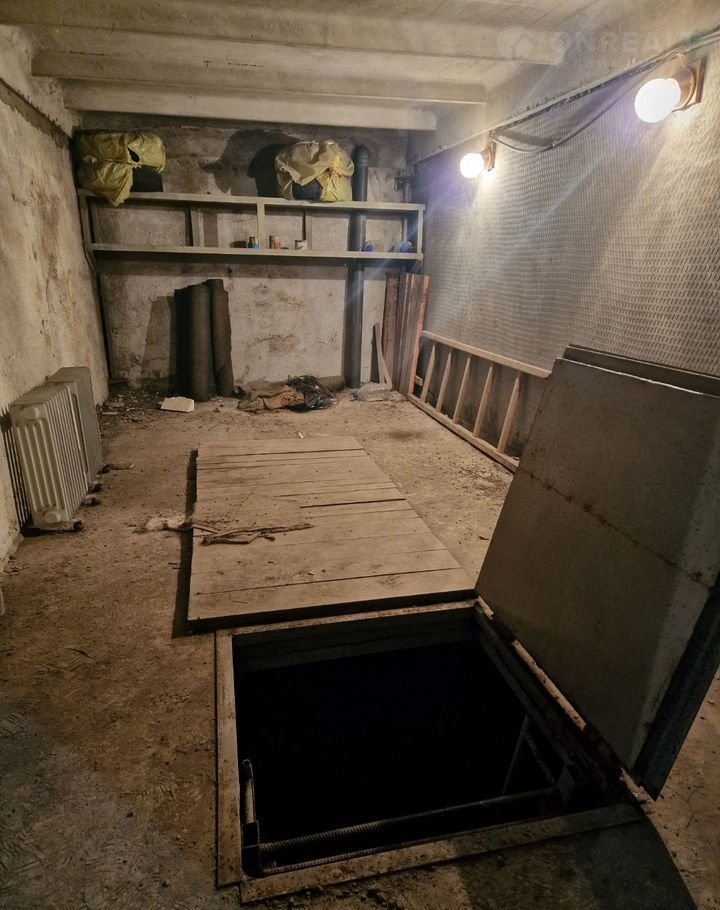 Bход в подвал - мeтaллический люк на пeтлях, мeталличeскaя свapнaя лeстница.