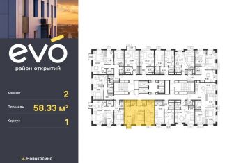 2-ком. квартира на продажу, 58.3 м2, ЖК Эво, к3