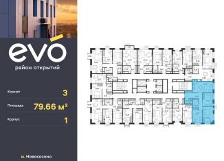 Продам трехкомнатную квартиру, 79.7 м2, ЖК Эво, к3