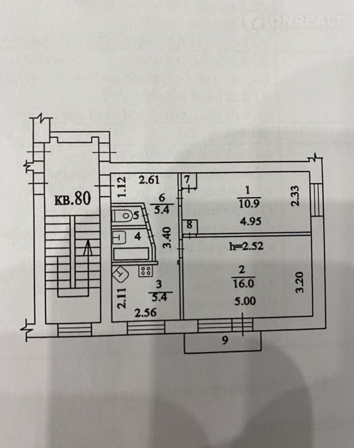 Площадь кухни 5.4 м2