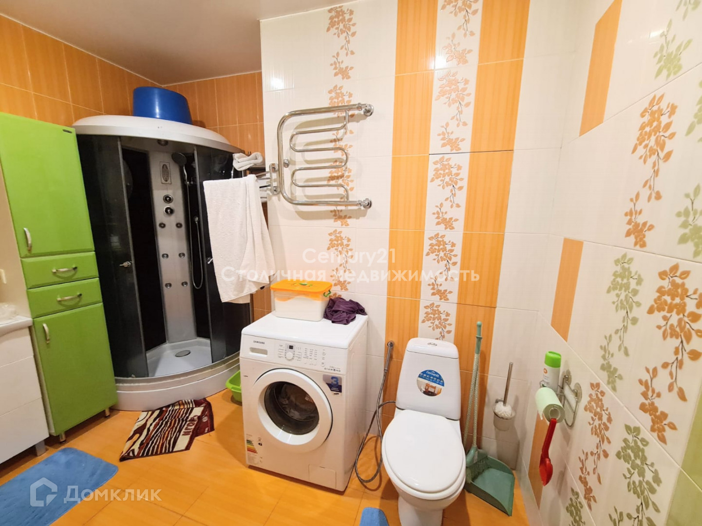 В холле огромный встроенный шкаф. Большой санузел с мебелью и душевой кабиной.