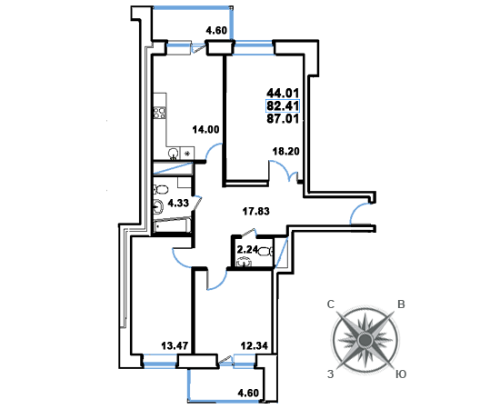 Общая площадь 87.5 м2