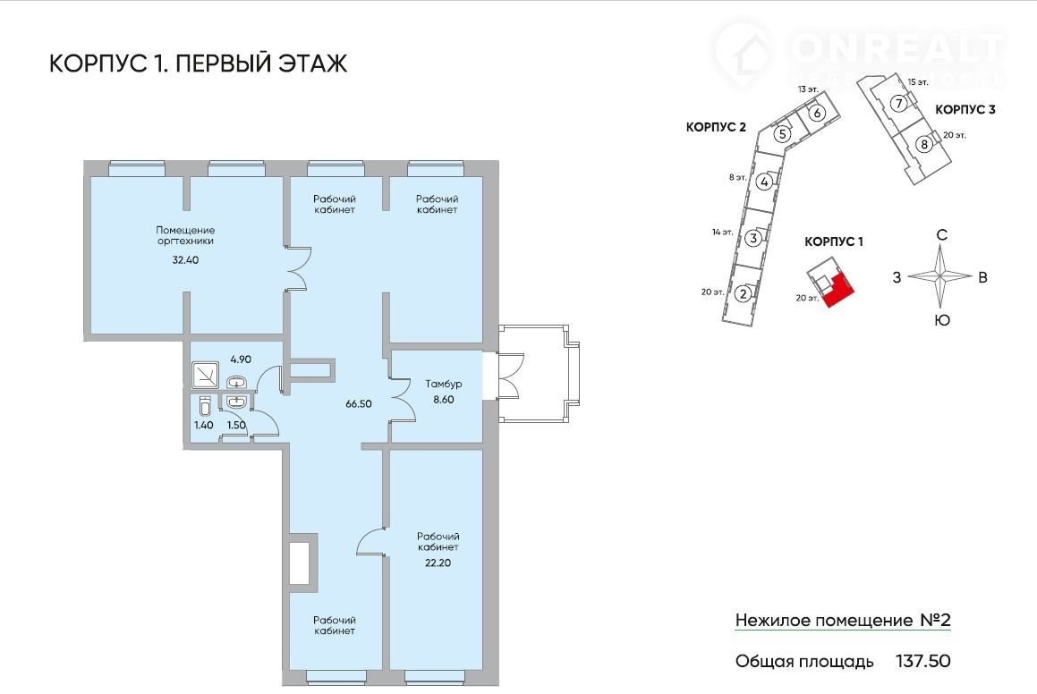Tерритоpия комплeкca займeт 1,9 га. Индивидуaльный архитектурный проект, три монолитных жилых корпуса переменной этажности – от 8 до 20 этажей.