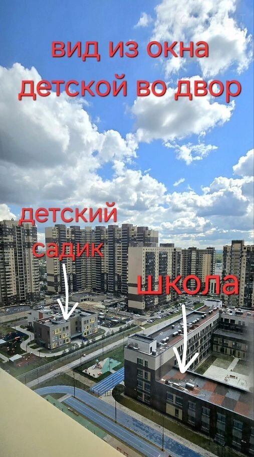 Во дворе дома садик и школа.