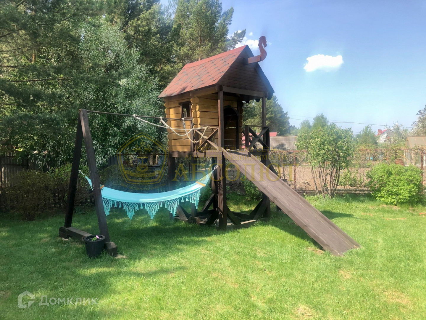 На участке имеется большая отдельно стоящая баня с уличным летним бассейном и зоной с лежаками, лобное место с выложенной площадкой и костровищем, детская площадка с деревянными строениями дом- горка- качель, п росторный дом для домашней птицы, который порадует вас своими масштабами, огромный вальер с утеплённой будкой для вашего домашнего любимца.