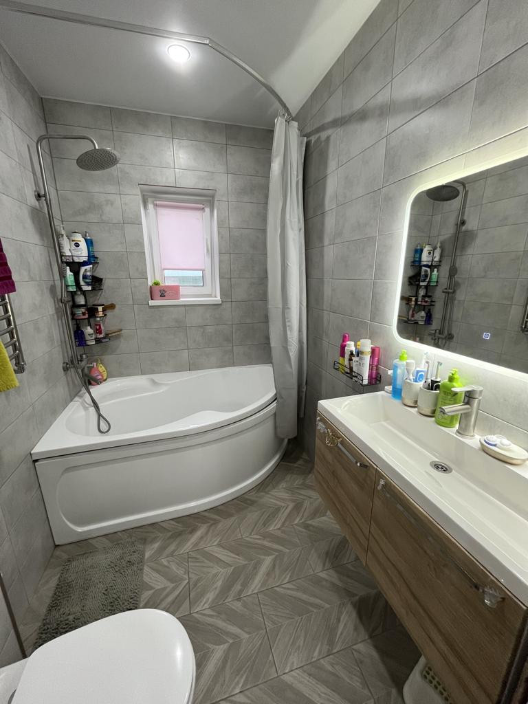 В доме останется встроенная кухня и техника ( духовой шкаф, индукционная варочная, вытяжка, посудомоечная машина ) , в сан. Узле- подвесная раковина, инсталляция (сантехника Frар).