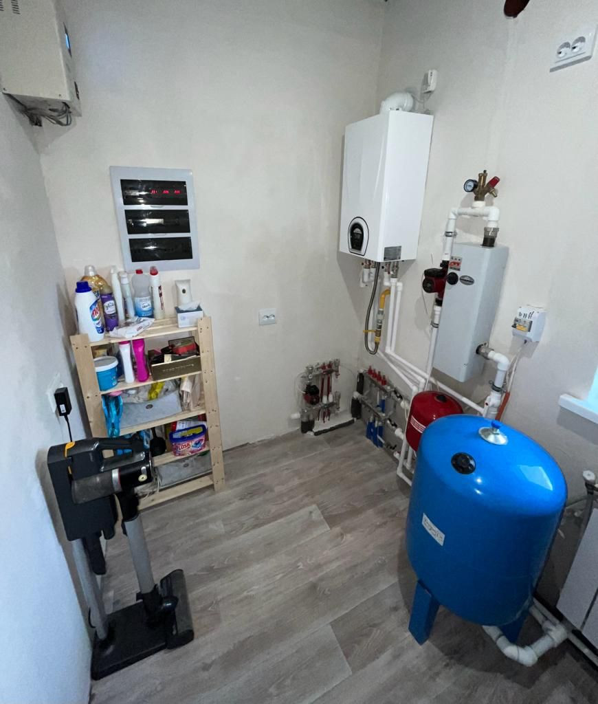 В доме все коммуникации: отопление 2 вида- электро-котел и газовый котел , установлен водонагреватель , так же двухконтурный газовый котел, Септик и кессон ск Урал 4, с гарантией на 100 лет , септик самоочищающийся, Скважина в кессоне 45 метров, подогрев скважины.