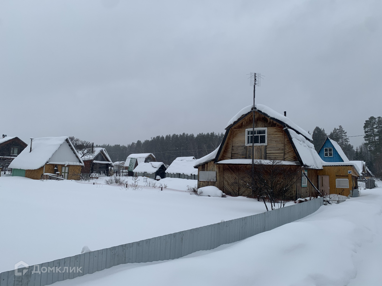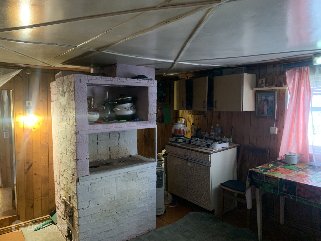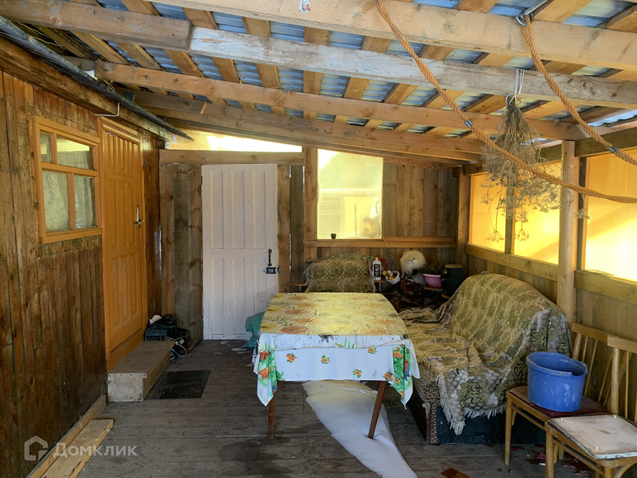 На участке площадью 6 соток расположен двухэтажный деревянный дом с печным отоплением, баня, теплица, беседка.