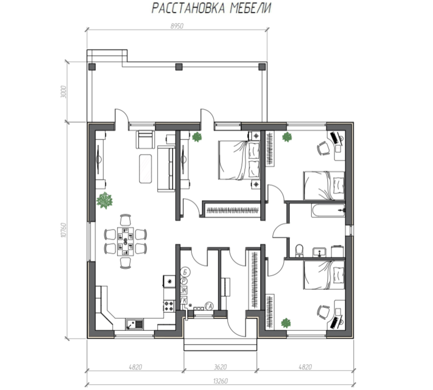 · Спальни 14,77м2, 14м2 и 14м2