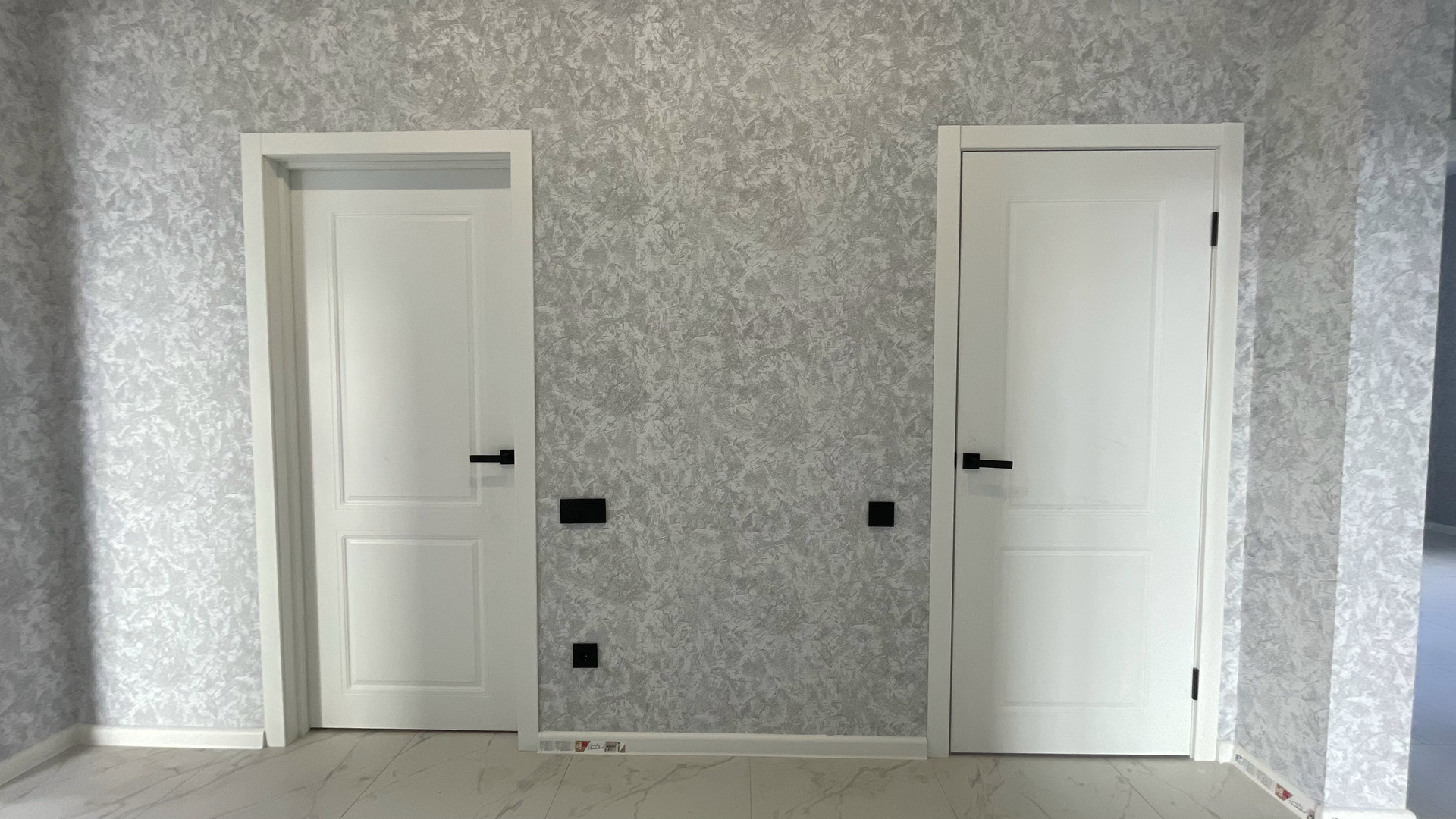 · Межкомнатные двери белые матовые с черной фурнитурой