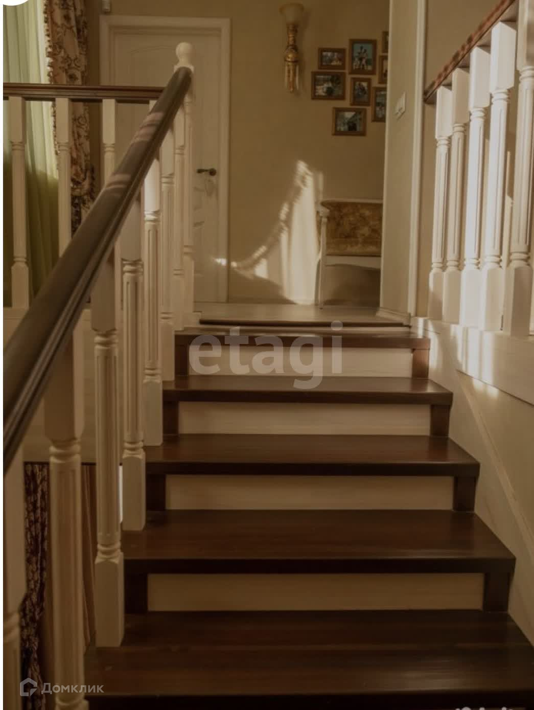 240 кв. м, имеет 2 жилых этажа + цокольный этаж с хоз. комнатой, котельной и кладовой.