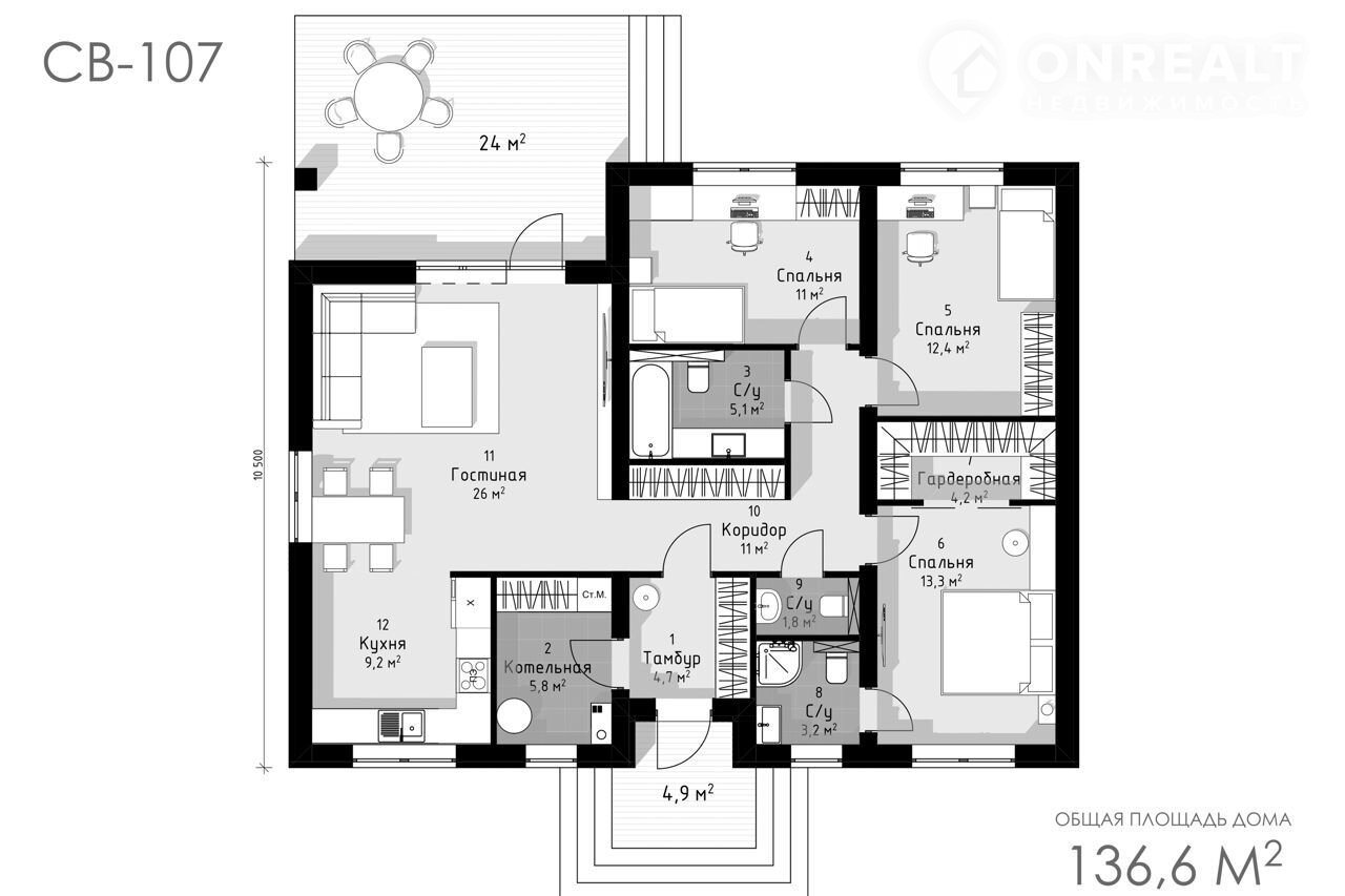 Общая площадь 136.6 м2