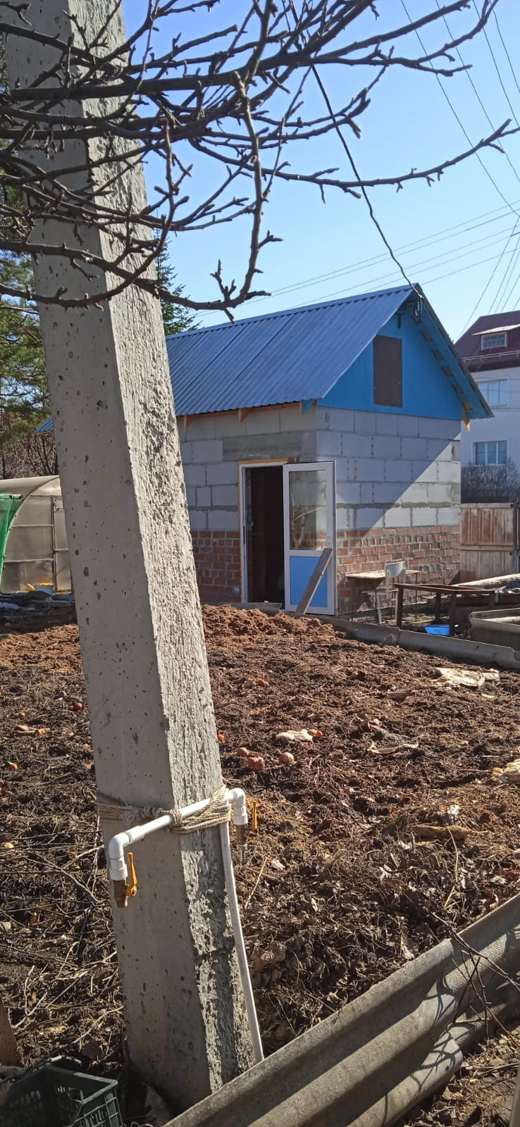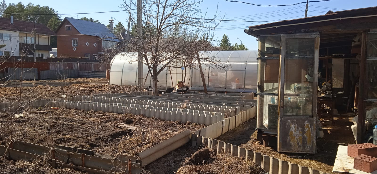 Есть надворные постройки:  помещение из блоков 3*4, для различного использования. Большая столярная мастерская за домом.