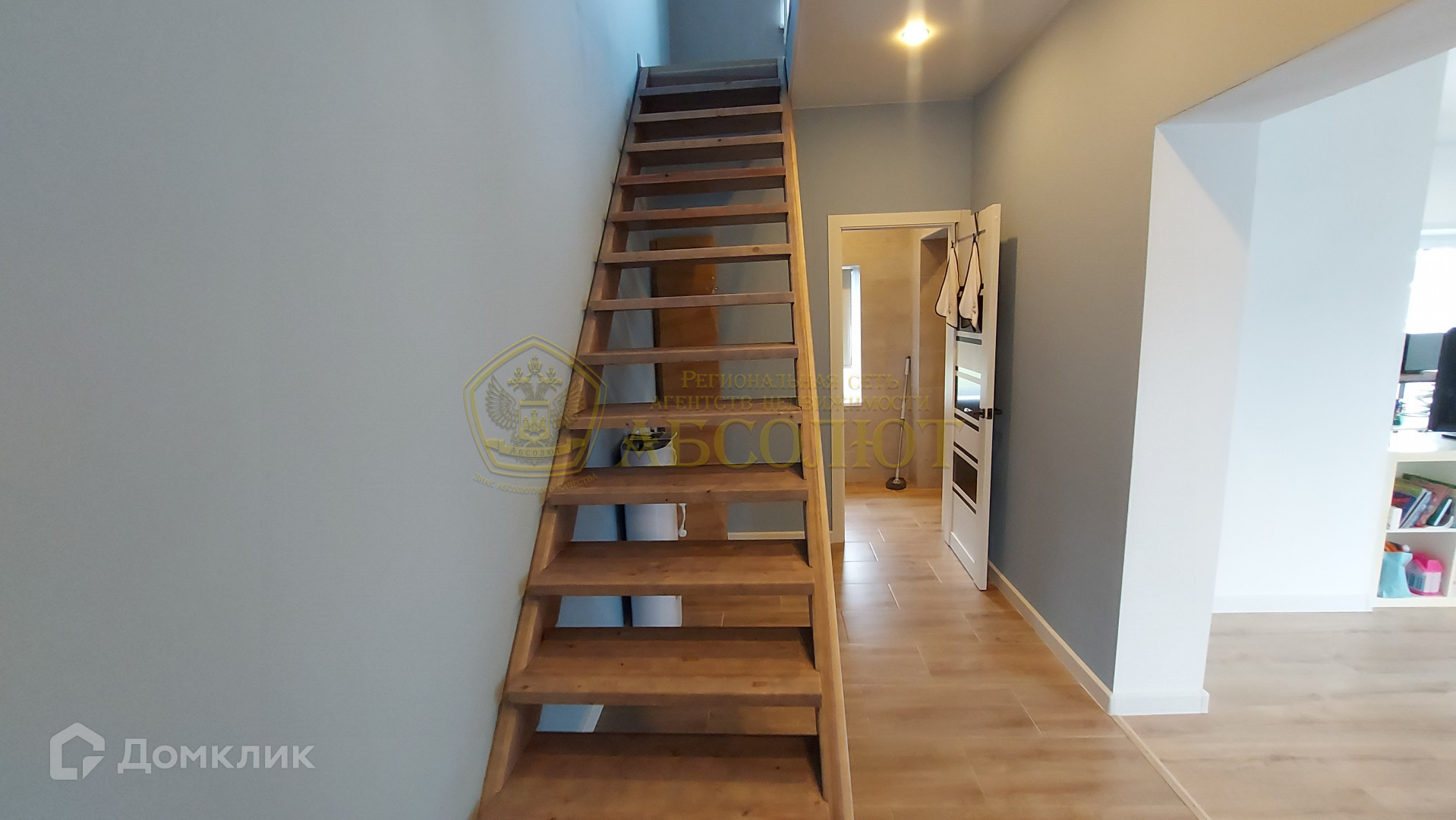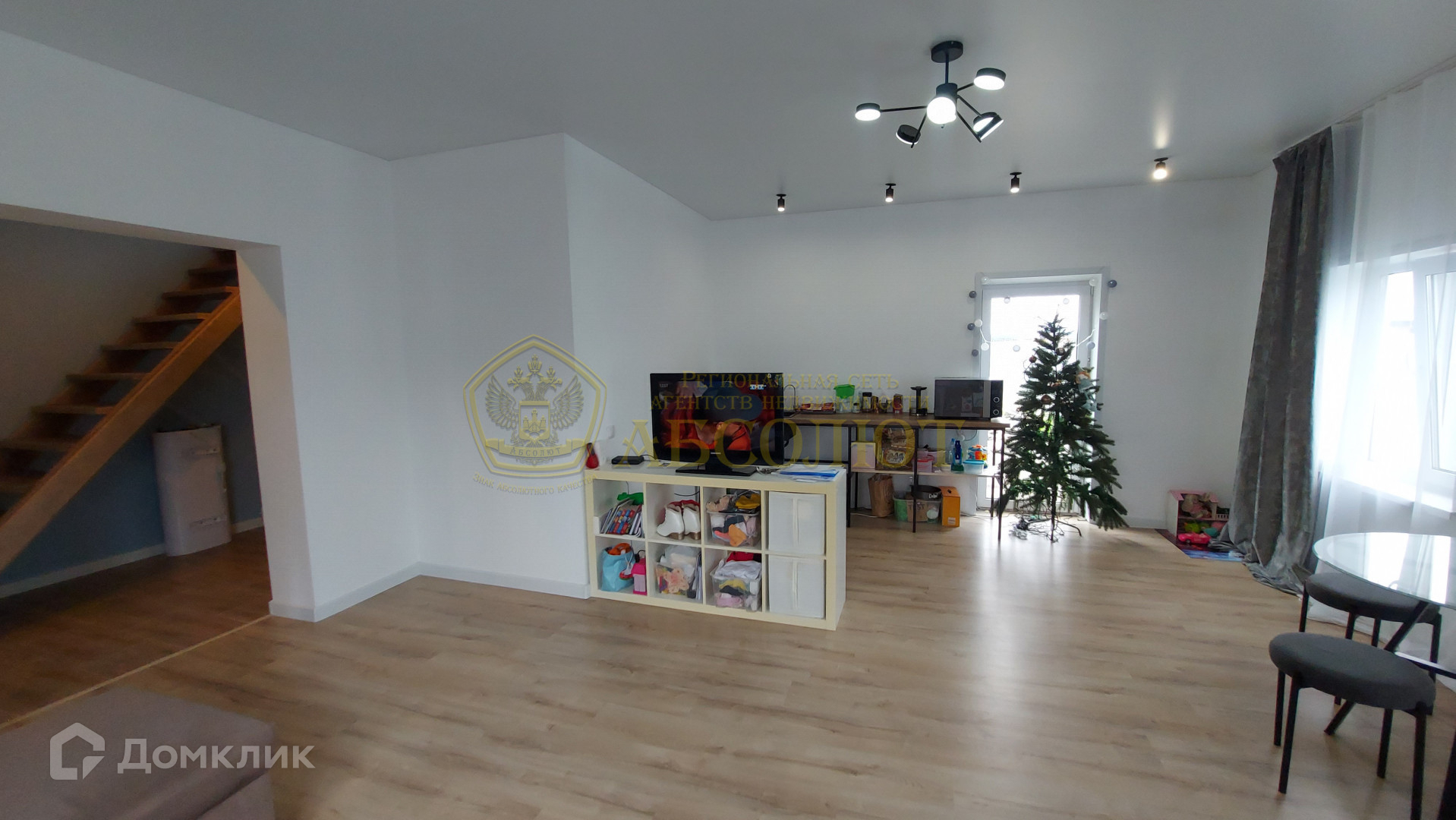 * Стильный интерьер: лестница из массива дерева, двери "дуб пломбир", пластиковые окна.
