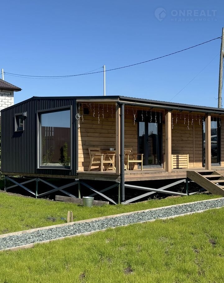 Дом. Каркасный дом 45кв.м. (60 кв.м. с террасой) был установлен в мае 2023 года. Введён в эксплуатацию в октябре. Установлен на свайно-винтовом фундаменте. Имеет две изолированные спальни, кухню-гостиную и санузел. Дом зарегистрирован. Гарантия на дом - 5 лет. Есть договор.