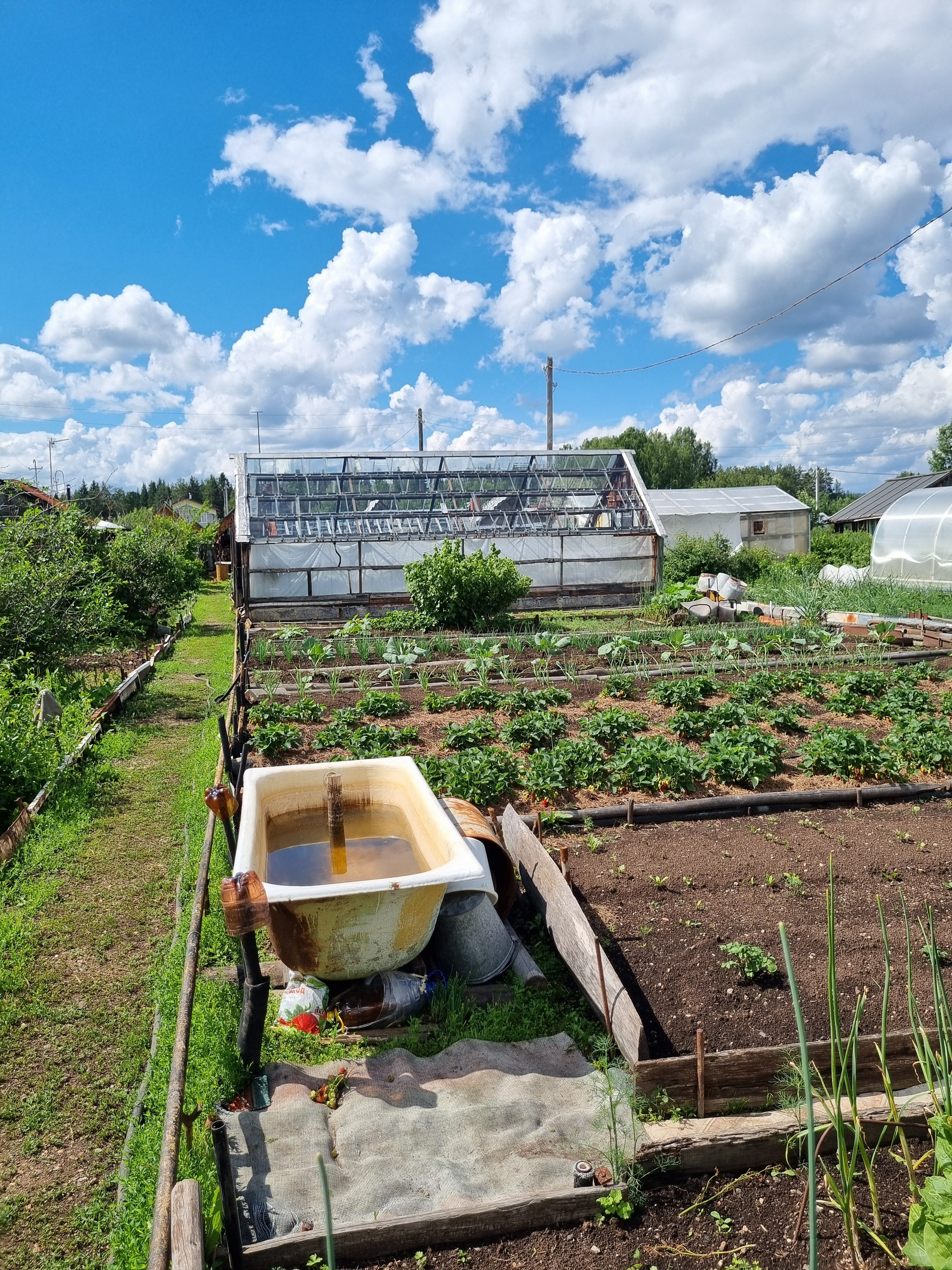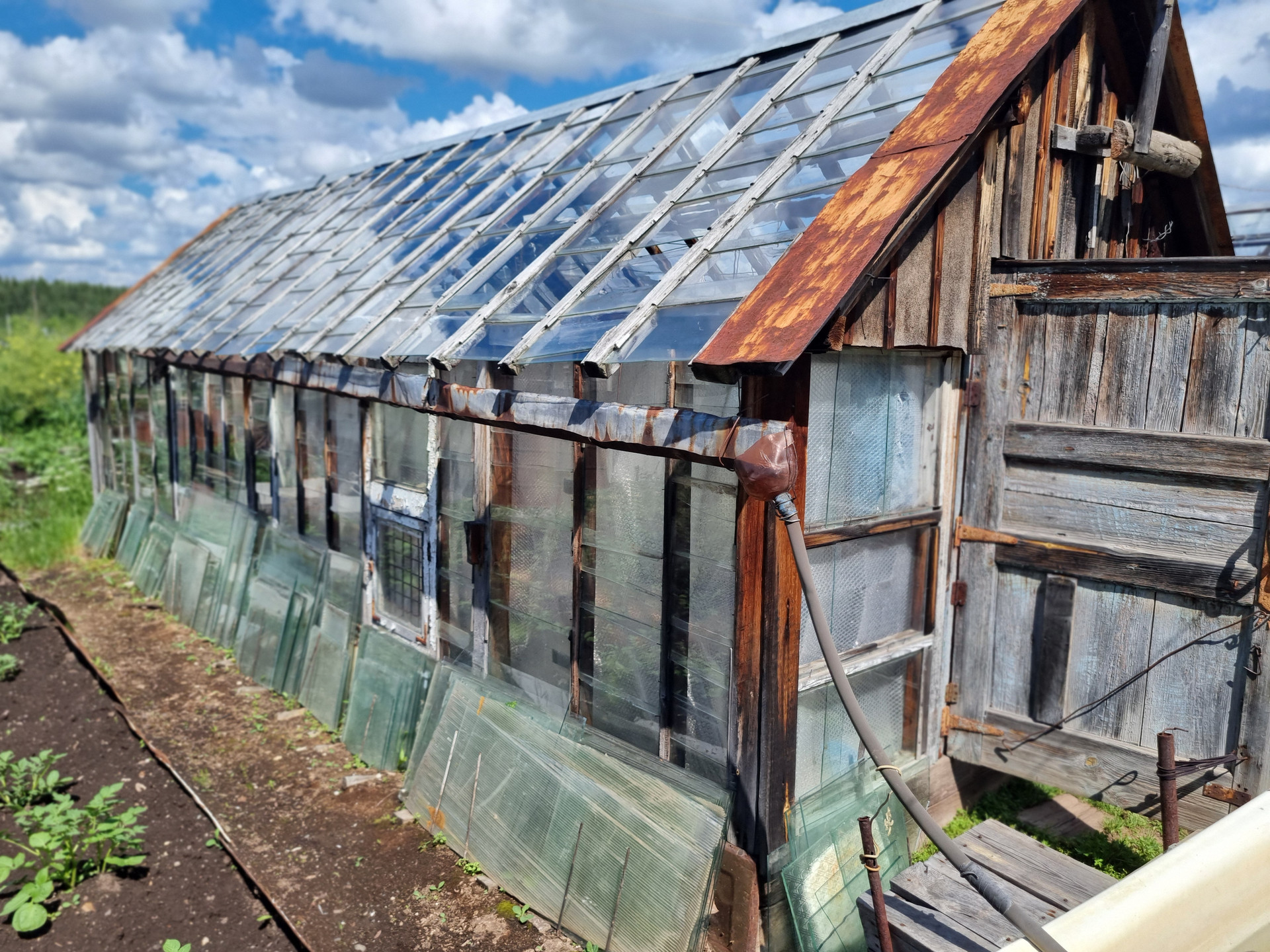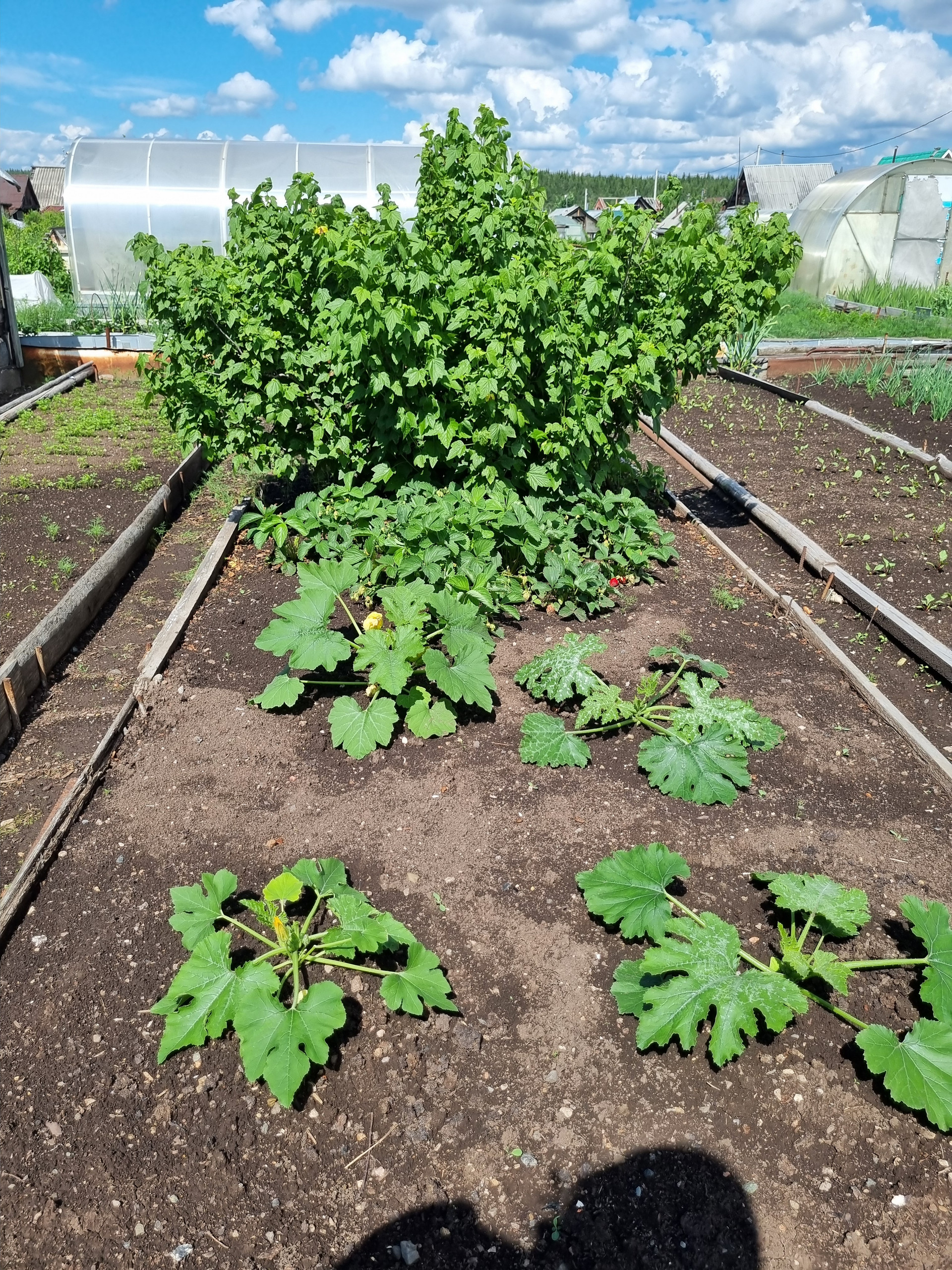 На участке расположены две теплицы.