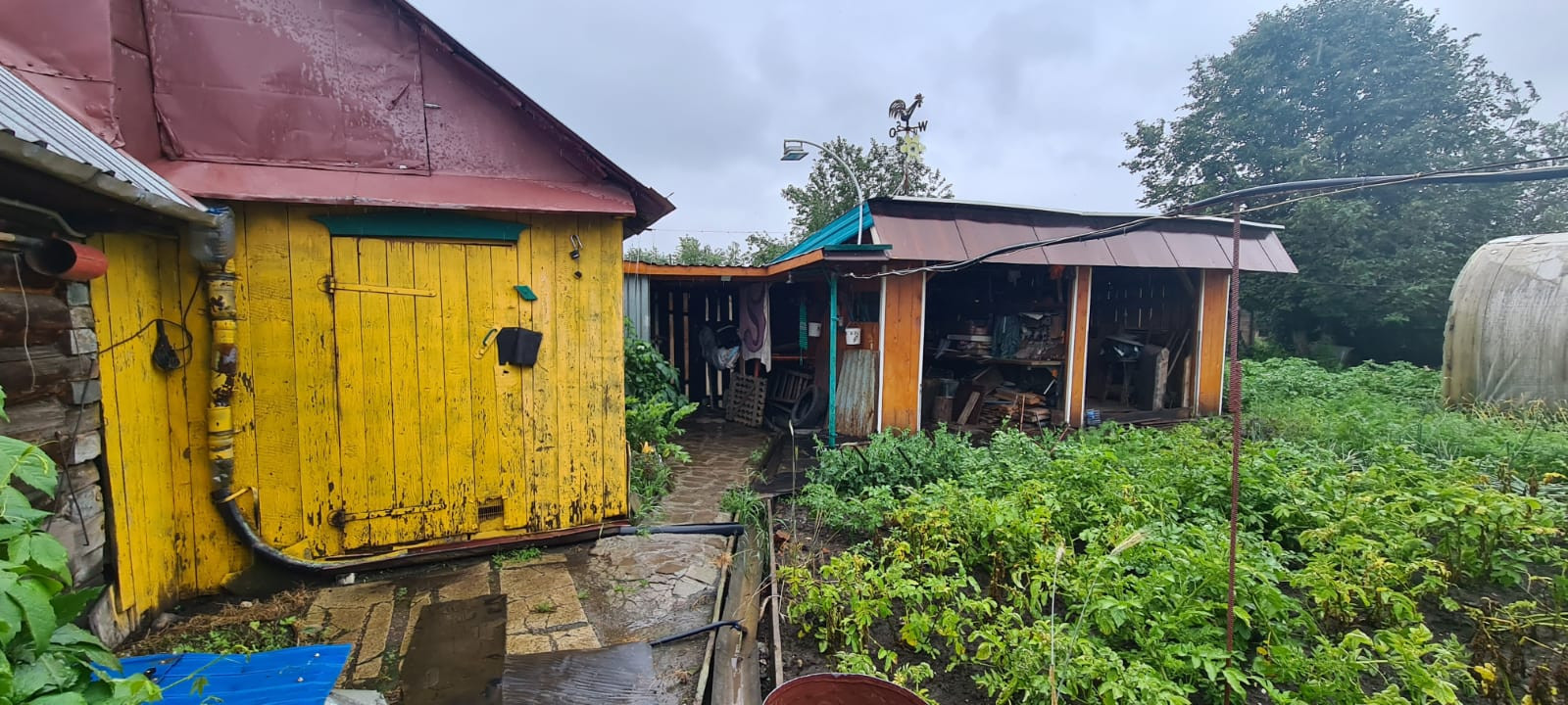 Помимо самого дома, на территории есть крытый двор, гараж на два автомобиля, баня и хозпостройки. Участок площадью 6,5 соток, на самом деле, оказывается даже больше, что создает отличные возможности для ландшафтного дизайна и озеленения.