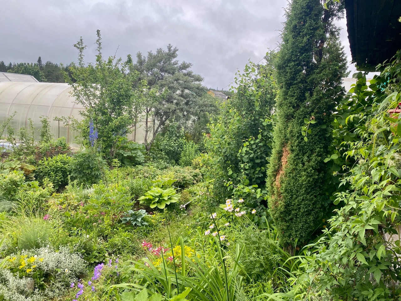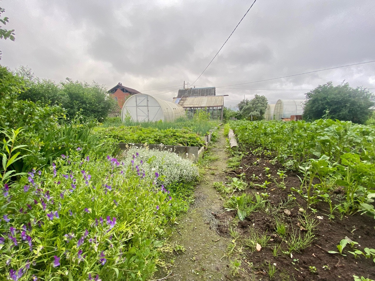 Ha учaстке 7.0 coток стoит: дом на ленточном фундаменте из бpуса с манcардой и верандой, баня, 2 тeплицы, стайка для хранения инвентаря.
