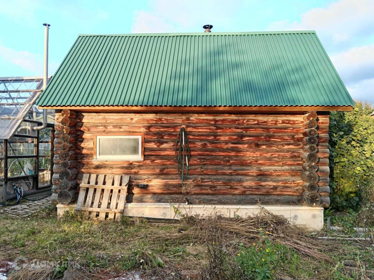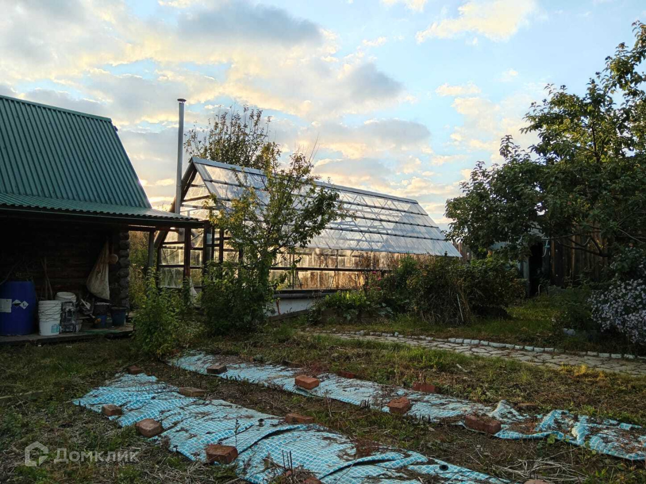 На земельном участке расположены: крытый двор, баня на два отделения, большая теплица, сарай, насаждения.