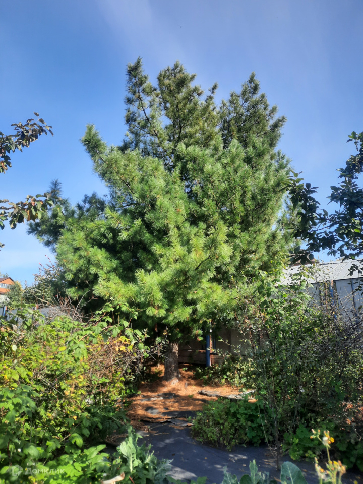 На участке высажен сад, растут плодоносящие деревья и кустарники: яблони, вишня, смородина, малина, слива, жимолость и т.п., рядом с баней раскинулся красивый кедр. Участок очень зеленый и, благодаря, разноуровневому ландшафту, позволяет наслаждаться видом на пруд и город.