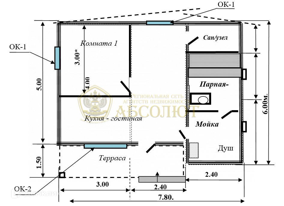 ХАРАКТЕРИСТИКА: ДОМ размером 7.80х6.00м., размеры наружные.