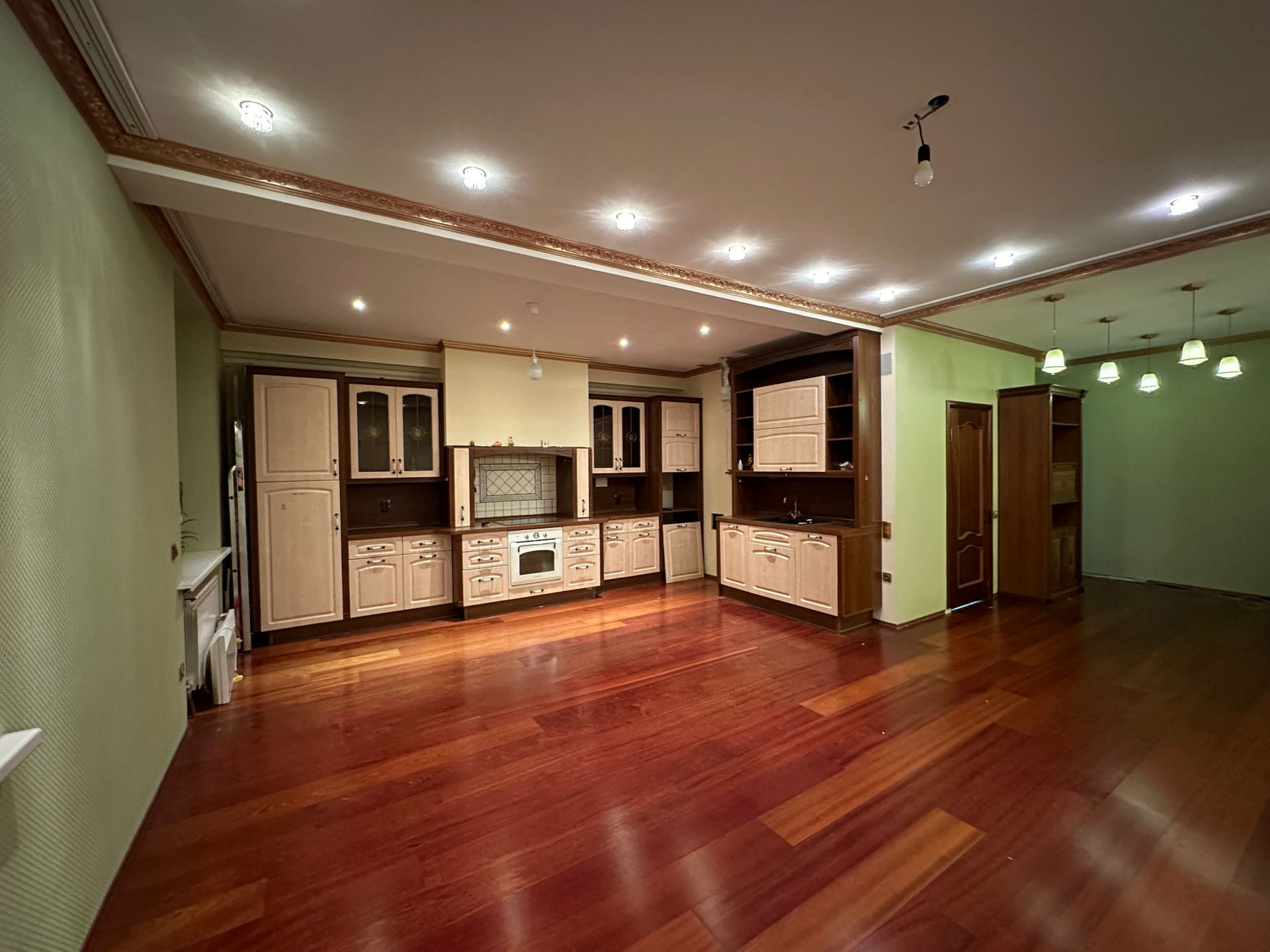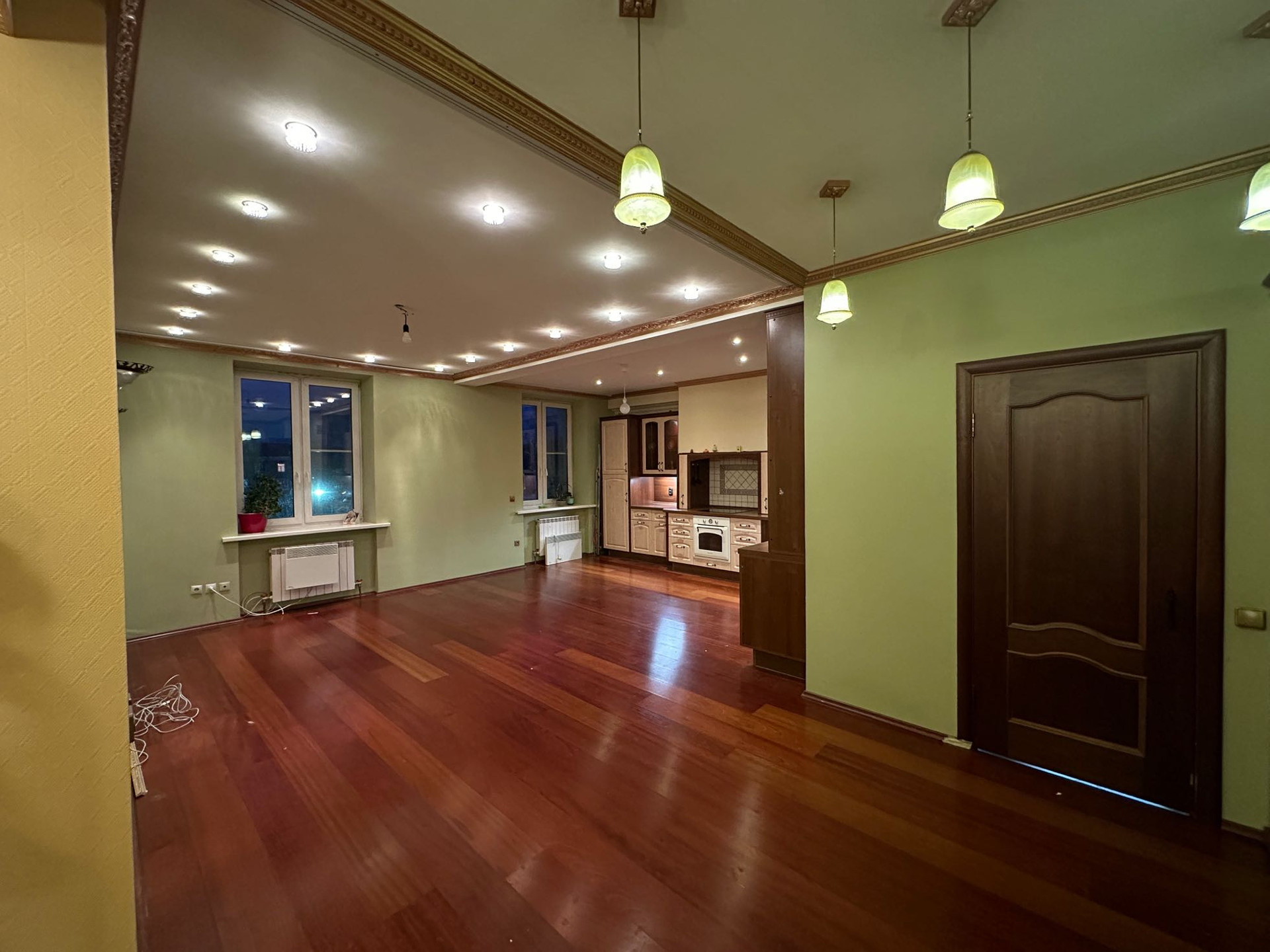 Квартира в центре города. Сделана перепланировка с полным капитальным ремонтом. Пластиковые окна с вентилируемым профилем. Сейф-дверь. Окна выходят на запад и на восток. Одна большая гостинная совмещенная с кухней и 3 изолированные съемки. В одной из комнат полноразмерный застекленный балкон. Отдельный электрический ввод в квартиру. Автономное отопление. Есть возможность подключиться обратно к центральному теплоснабжению (трубы, радиаторы оставлены на месте). Большой совместный санузел (две раковины, ванна, унитаз). Оставляем полноценную огромную кухню частично с встроенной техникой. В комплекте имеется большая кладовка в подвале подъезда.