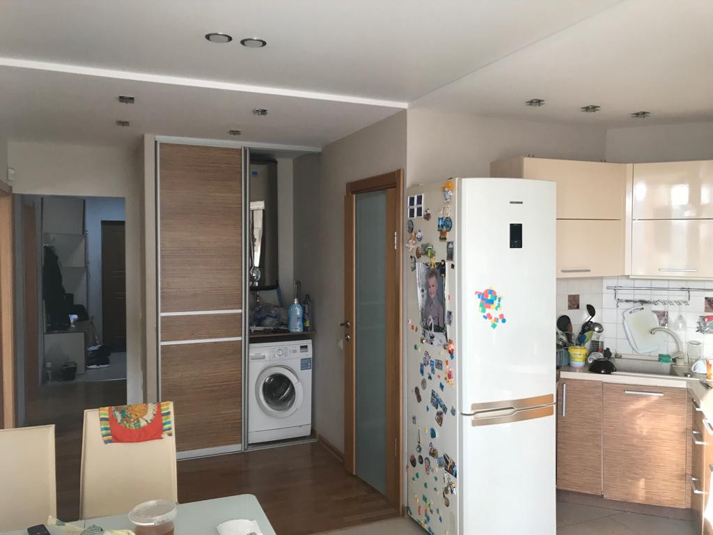 кухня объединена с лоджией ; объединены санузел и ванная. Что создаёт комфорт и уют.