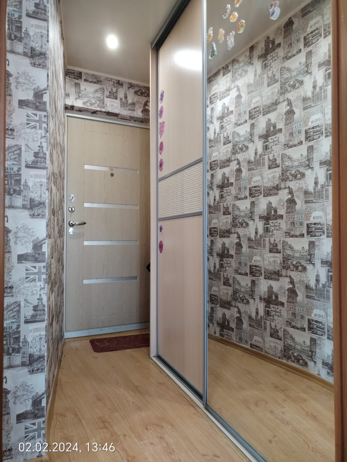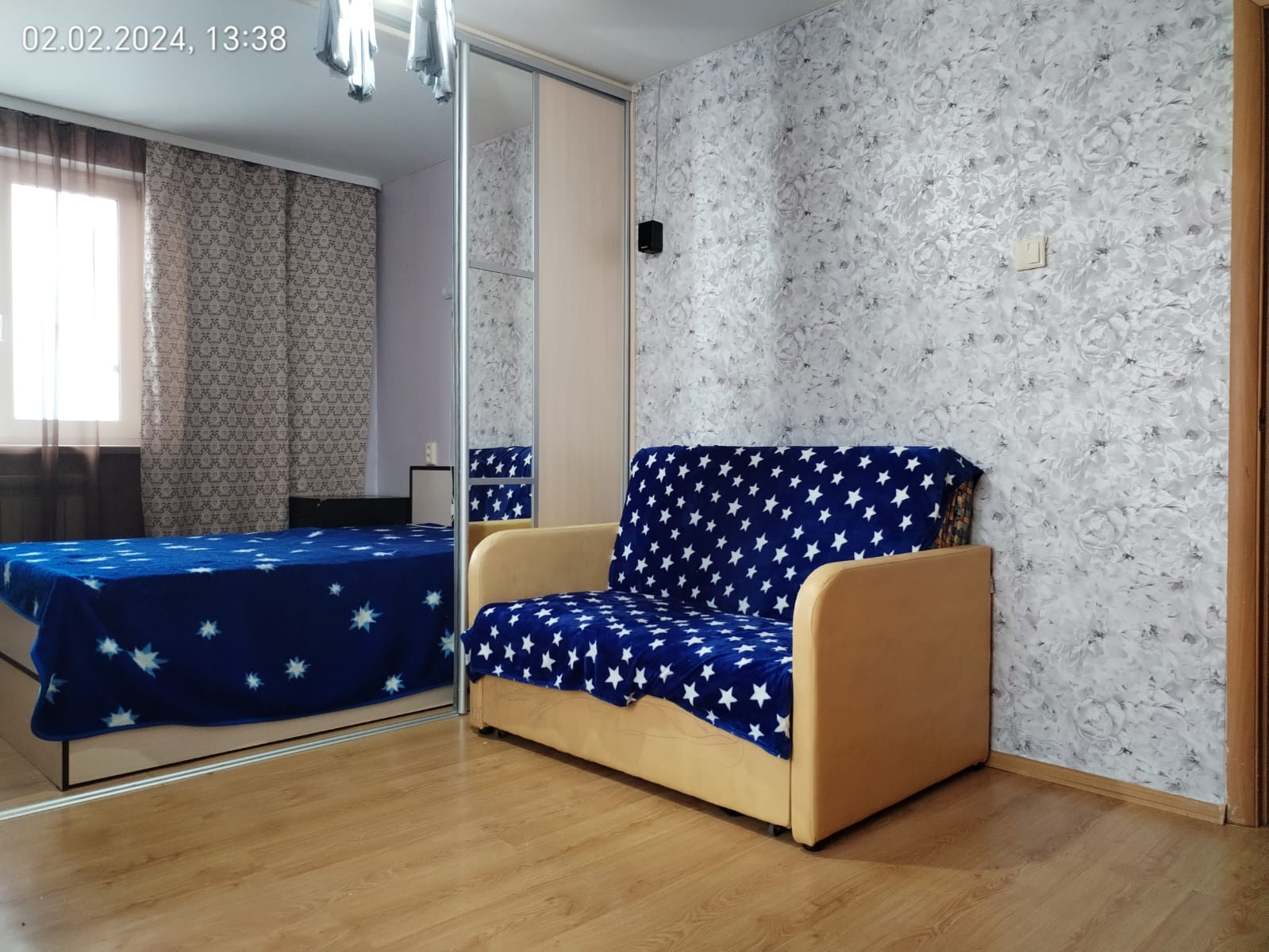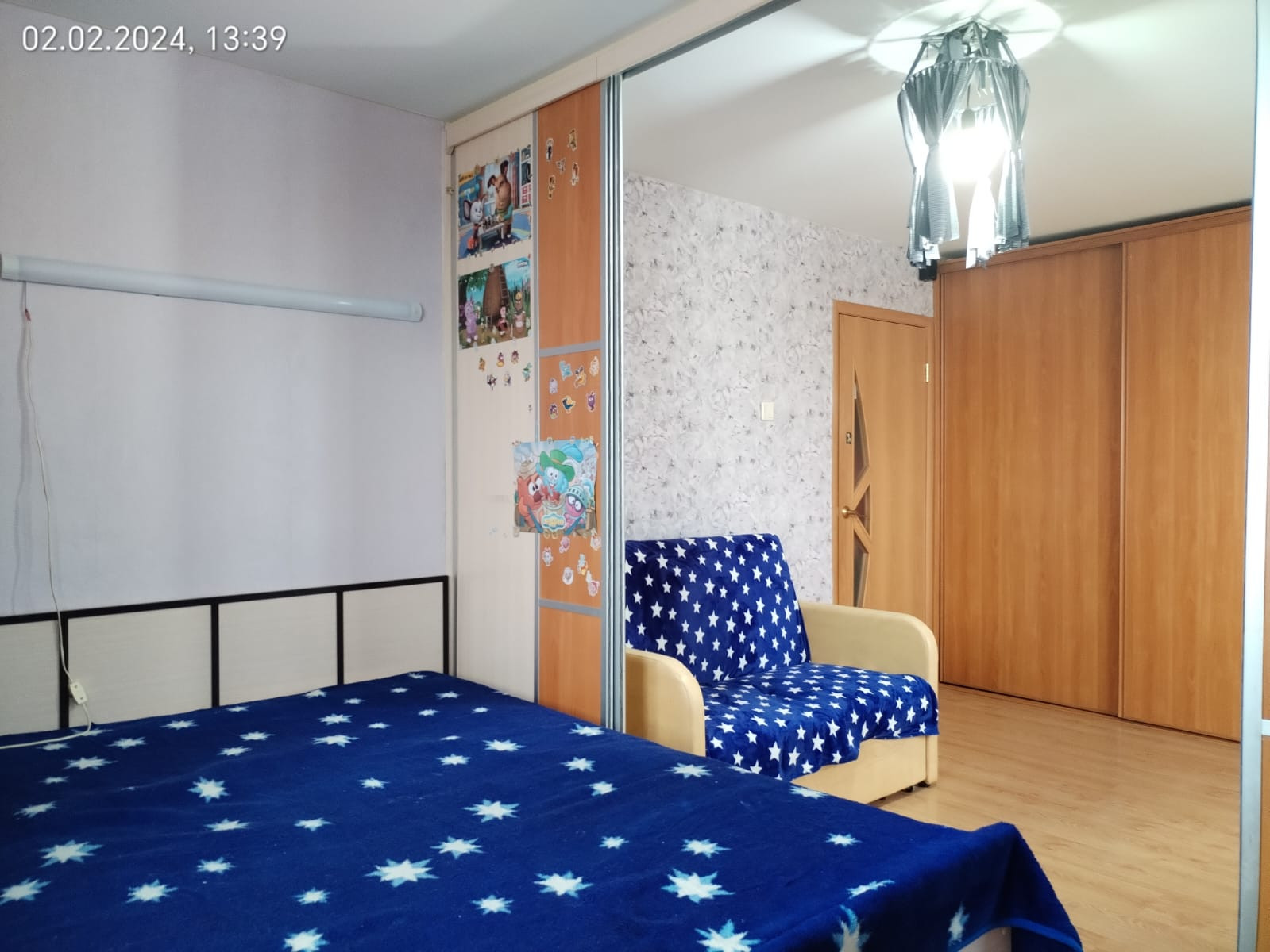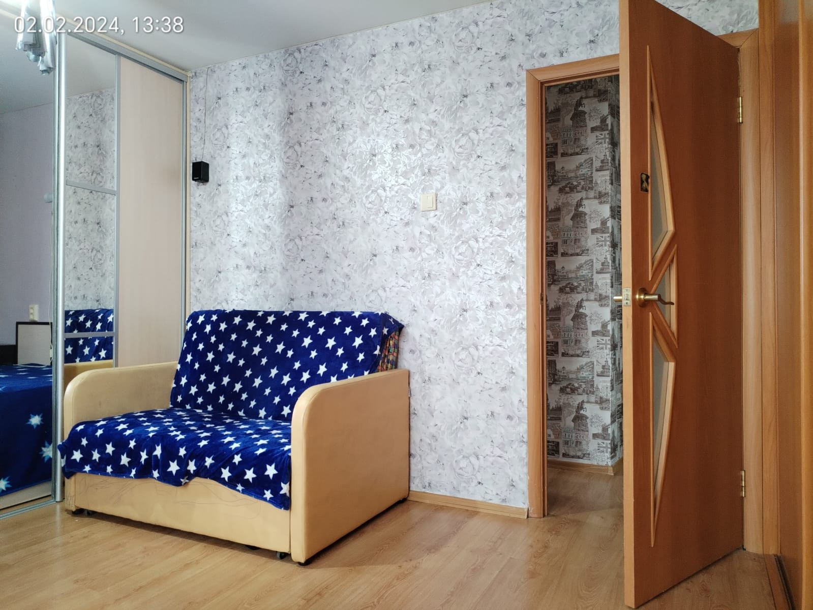 +На стенах обои;
