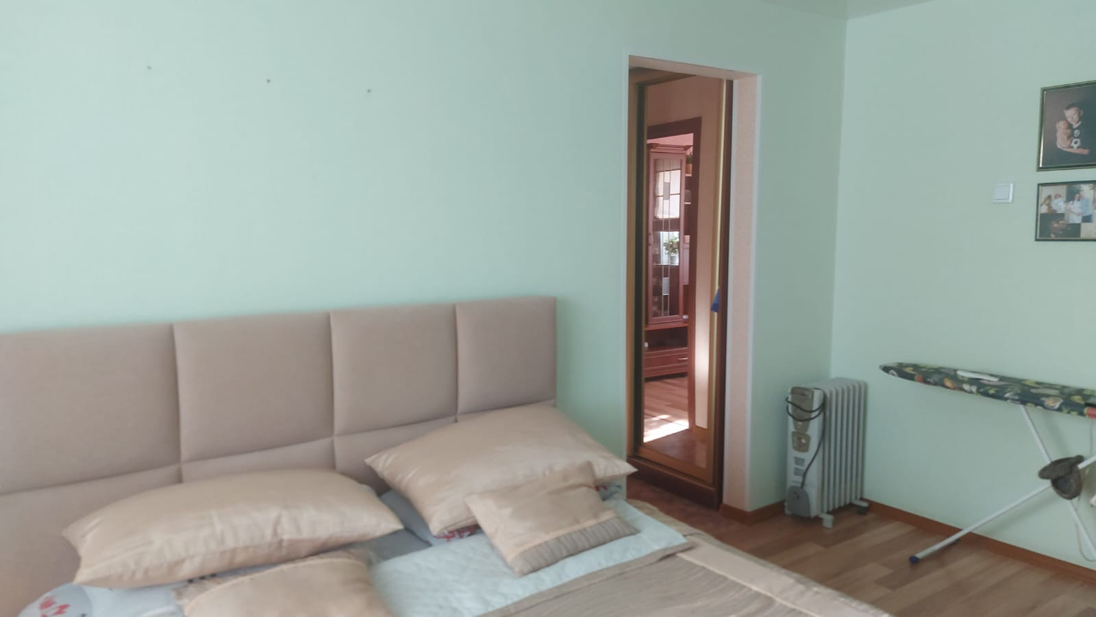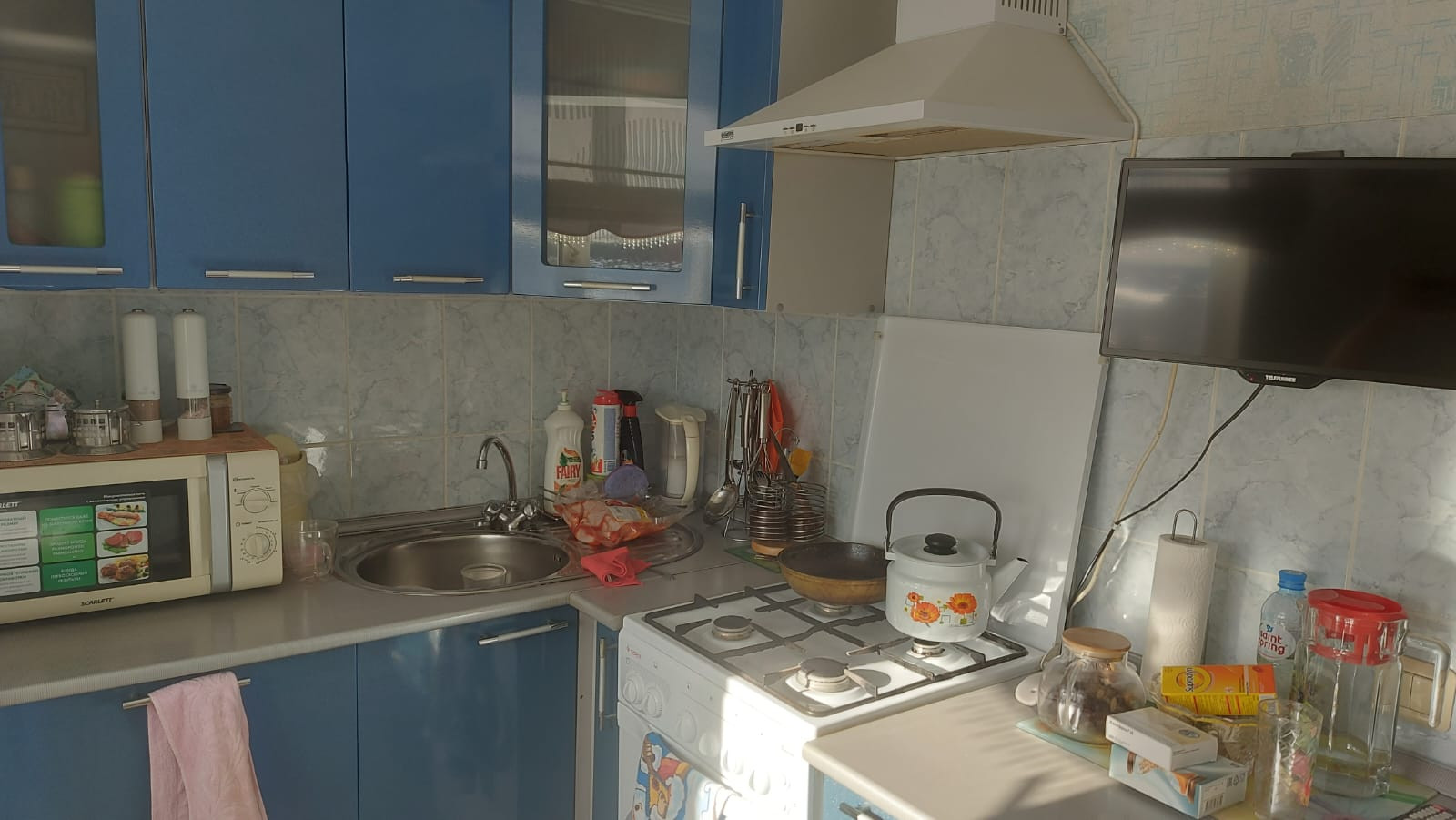 Ванная: стены - кафель, потолок - панели. кухонная мебель встроена, шкаф - купе. Можем оставить ещё мебель по договоренности...Соседи спокойные, тихие. Есть ларь в подвале под хранение овощей. Район хороший, полиция рядом., детская поликлиника в шаговой доступности.