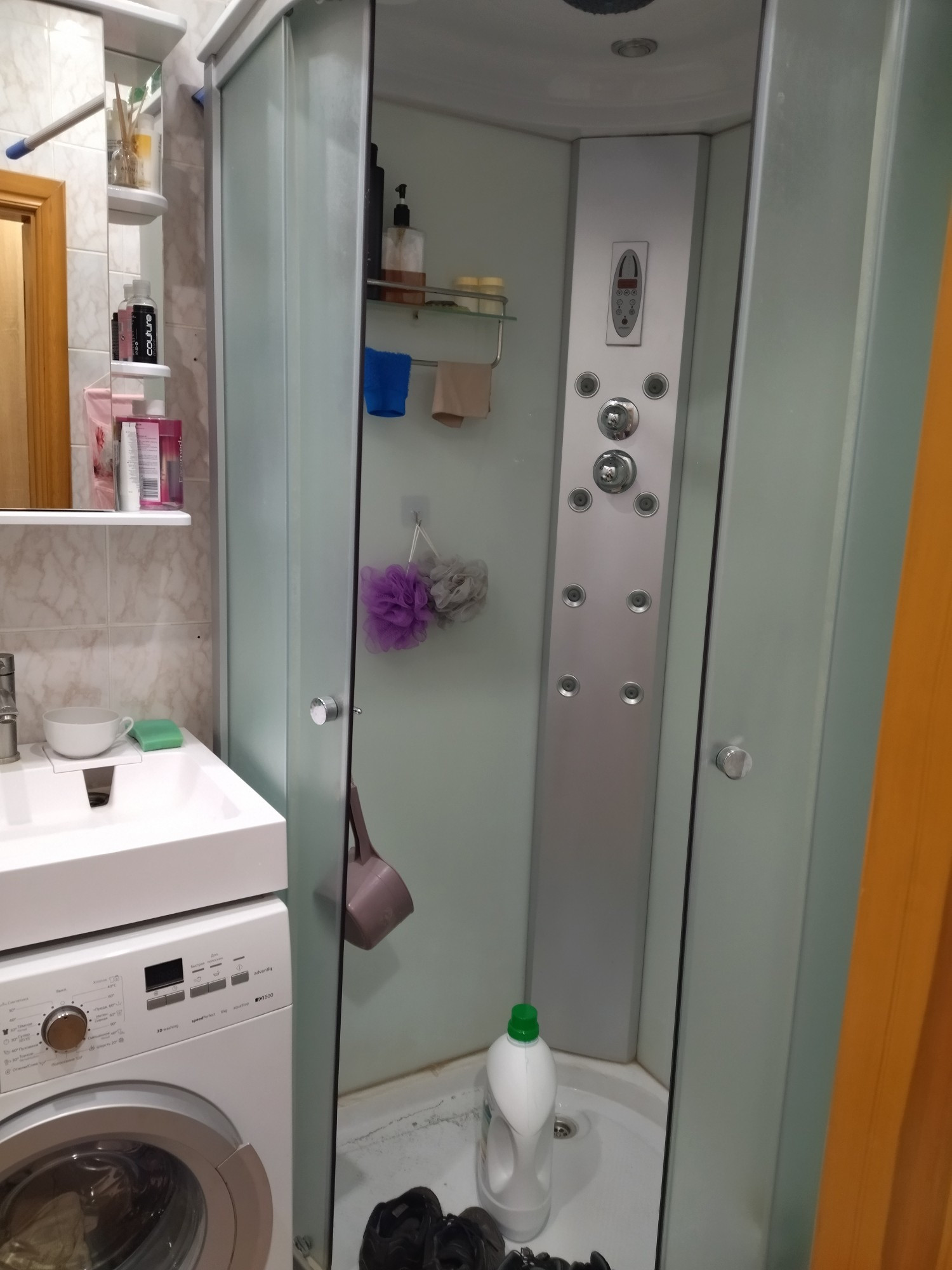 большая однокомнатная кв, санузел совмещён (душевая кабина, биде) , большая кухня, встраиваемая техника, лоджия, кв тёплая, уютная.