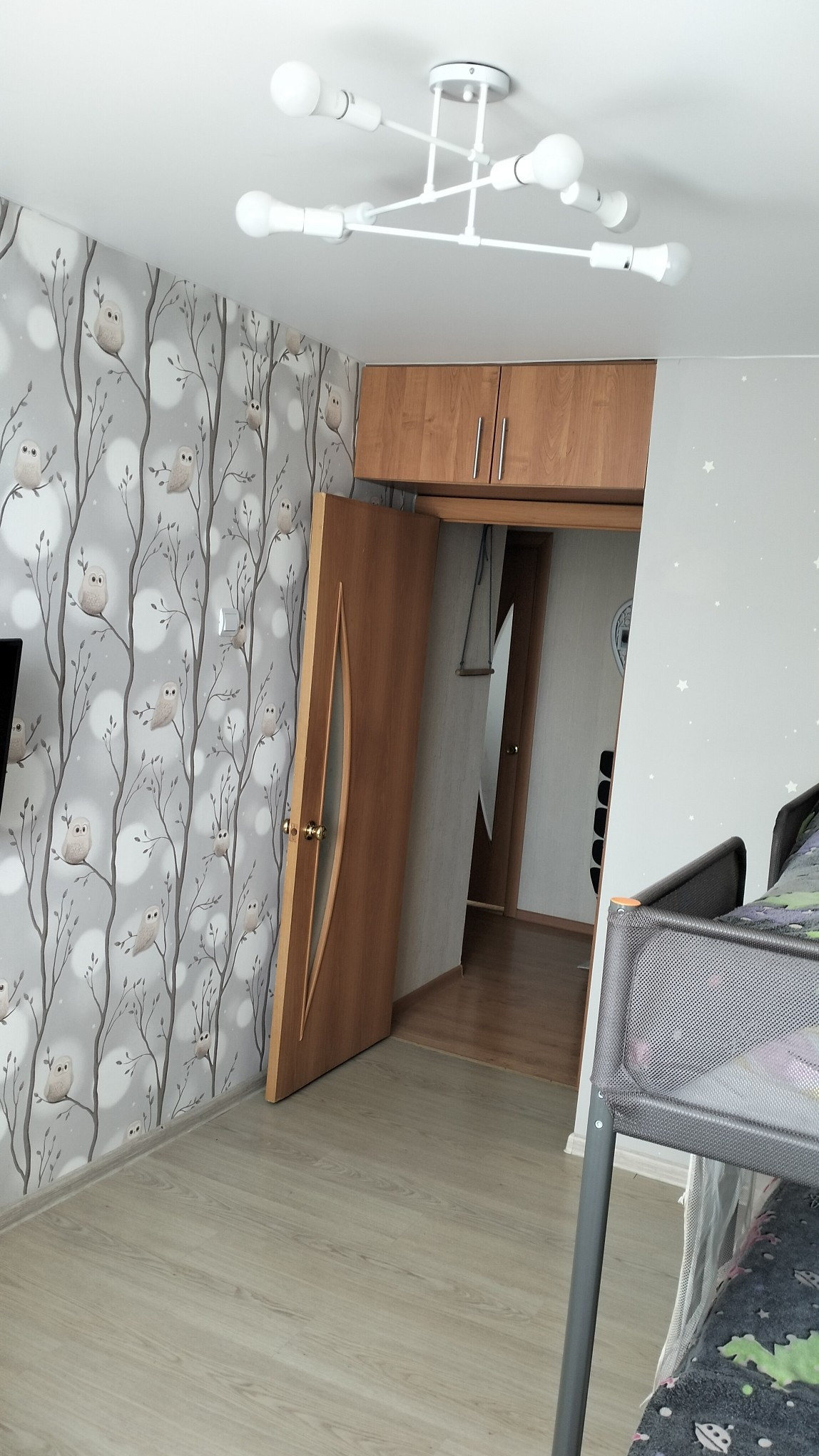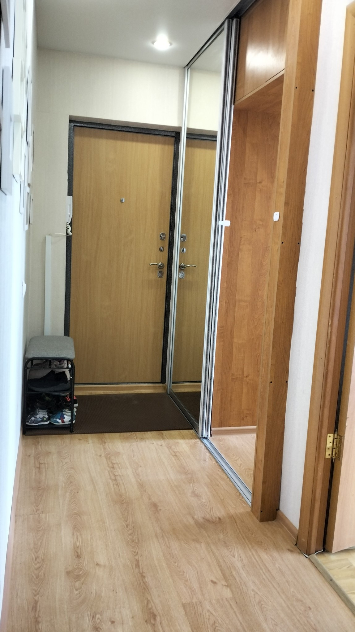 При продаже остаётся шкаф-купе в прихожей, кухонный гарнитур, шкаф-купе и стенка в гостиной.
