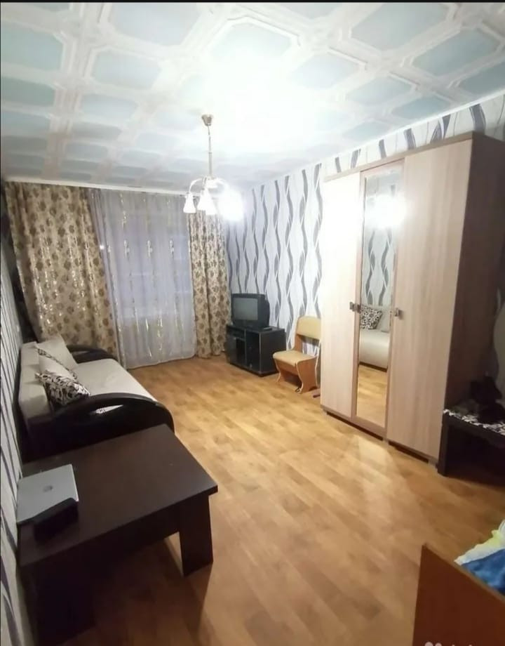 В квартире косметический ремонт: окна пластик, на стенах обои, потолок-клеевая плитка, напольное покрытие в комнате линоллиум (на кухне и в прихожей ламинат), лоджия застеклена, входная дверь-сейф.