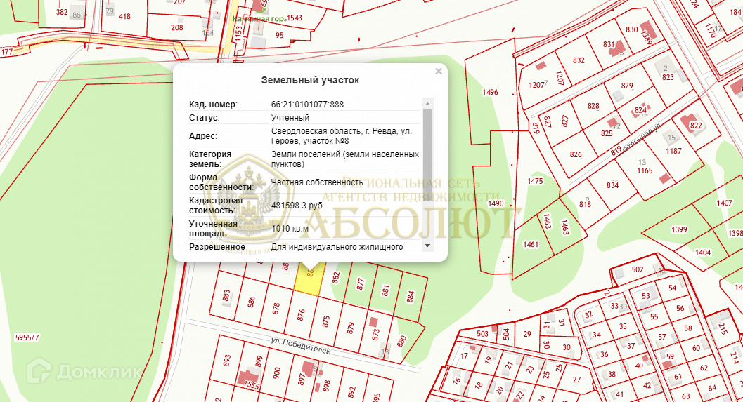 Земельный участок входит в категорию земель населенных пунктов и предусматривает разрешенное использование для индивидуального жилищного строительства. Кадастровый номер участка: 66:21:0101077:888.