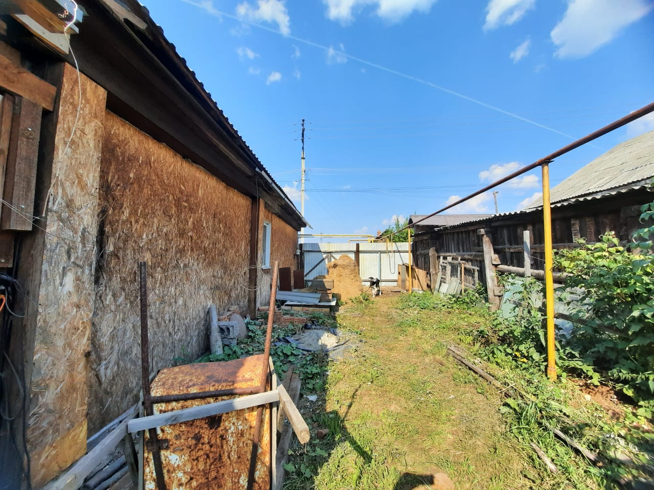 Жилой деревянный дом с газовым отоплением, скважина, канализация, с/у и ванна в доме, баня, большой крытый двор, большая беседка, яма овощная и смотровая, евро-куб для полива, сделан пристрой из бруса 20 кв.м.