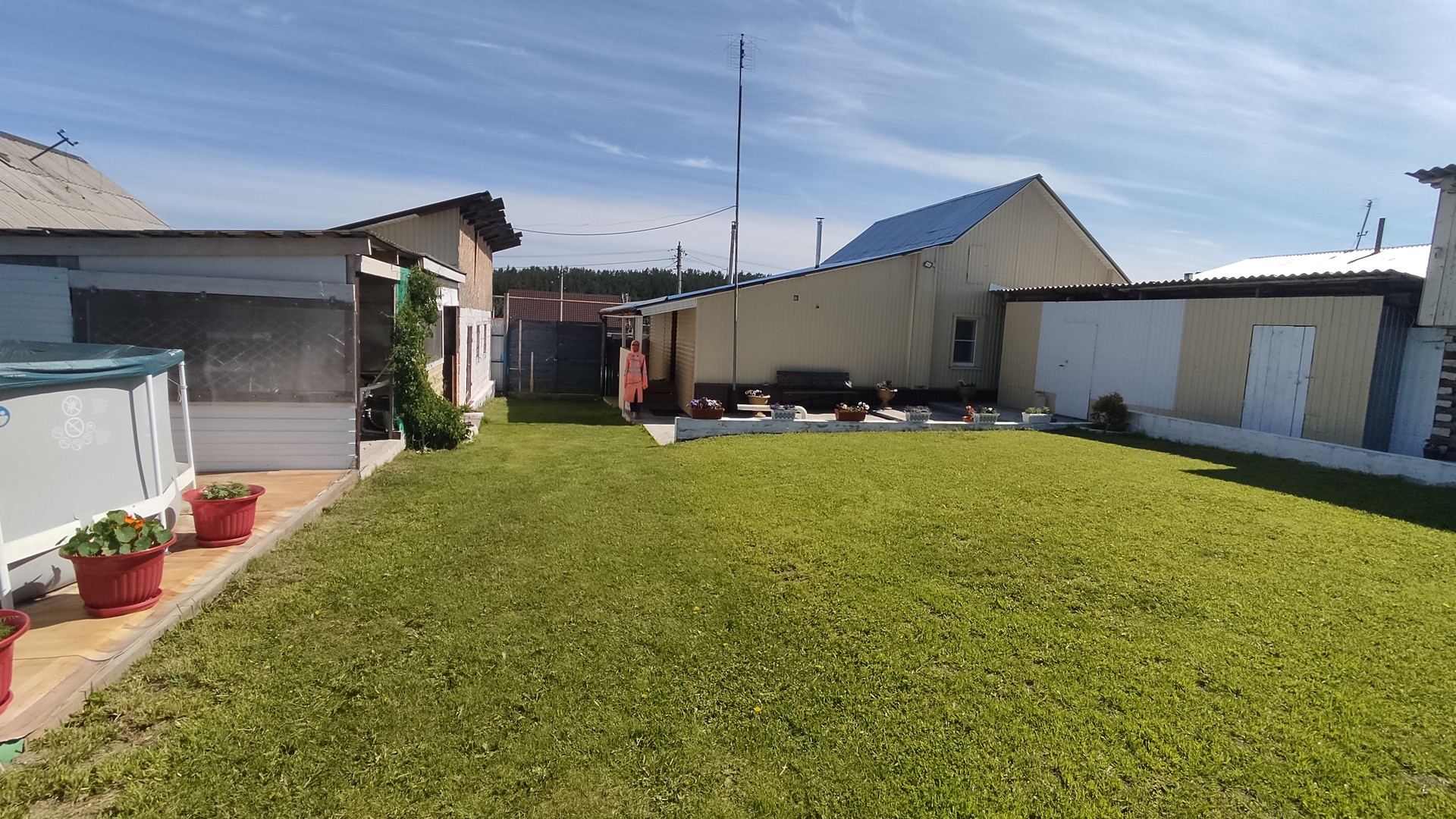 Зона отдыха : просторная веранда, мангальная зона, газон, площадка для установки бассейна (5*5) в летнее время, бассейн 4 м.