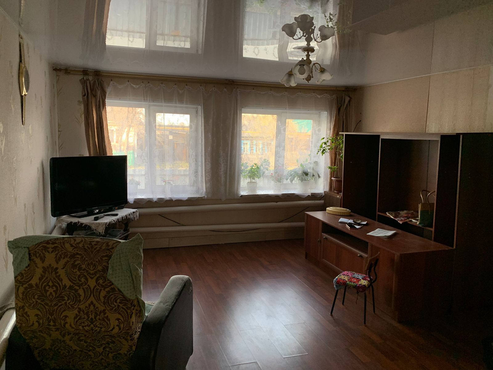 S- 88.8кв.м, три комнаты, большая кухня-столовая, пластиковые окна, душевая кабина, туалет в доме. Есть своя скважина, в доме электро котёл+ твердотопливный, гараж, хорошая баня, рядом с домом газ, большой крытый двор. Земельный участок 7 соток, огород полностью разработан, есть теплица, всё насаждения.