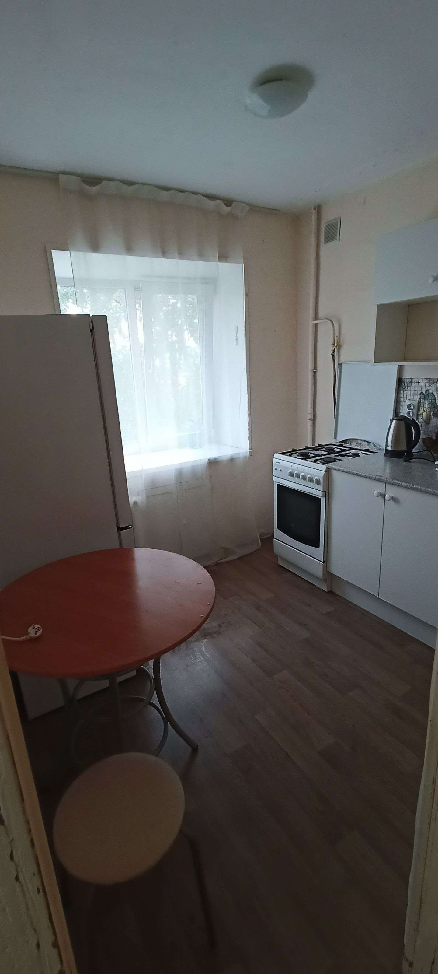 В квартире два года назад сделан светлый косметический ремонт, на полу качественный линолеум, санузел в кафеле и установлен полотенцесушитель. Окна выходят на светлую сторону, а весной прямо рядом цветут красивые яблони.