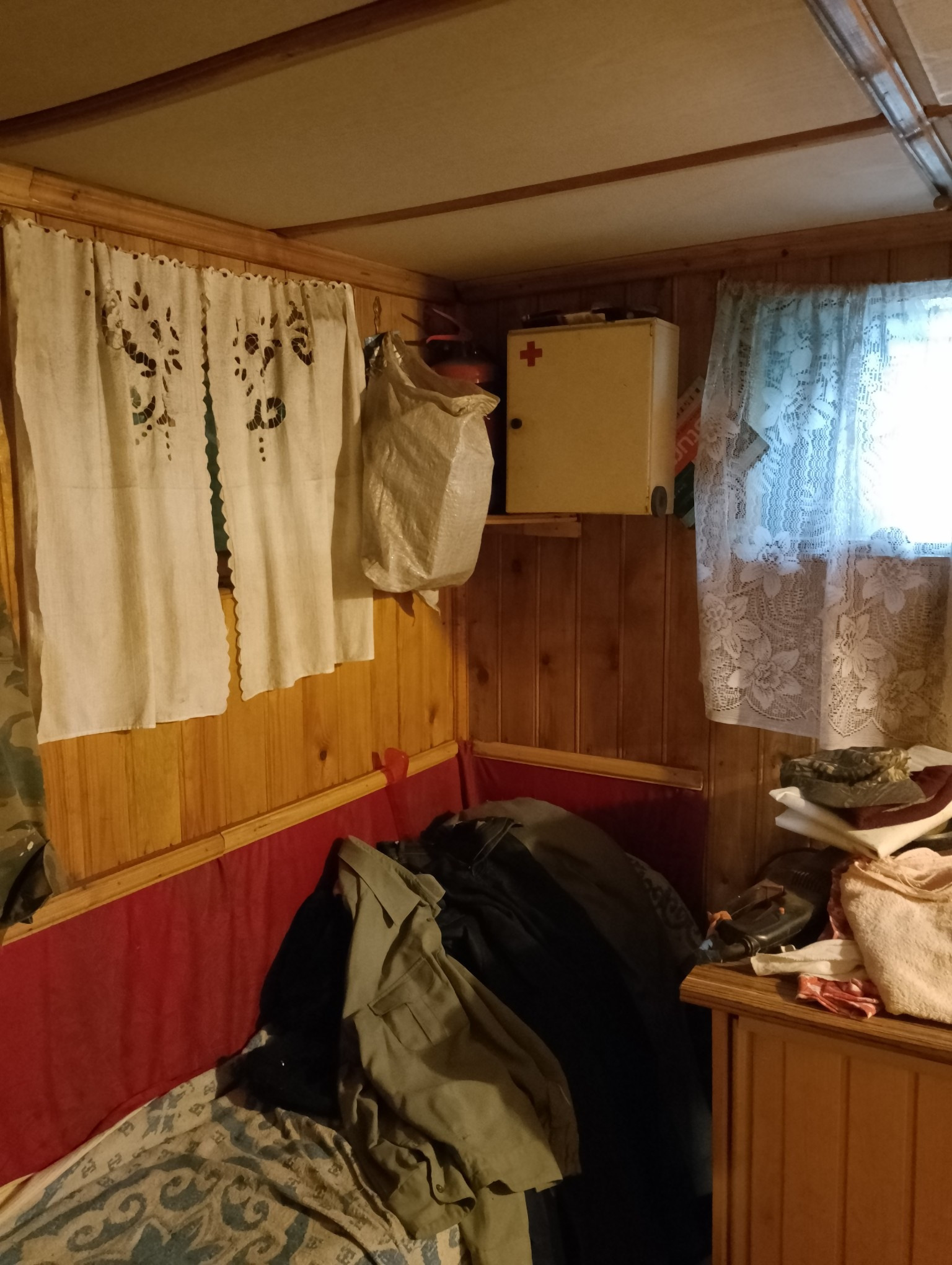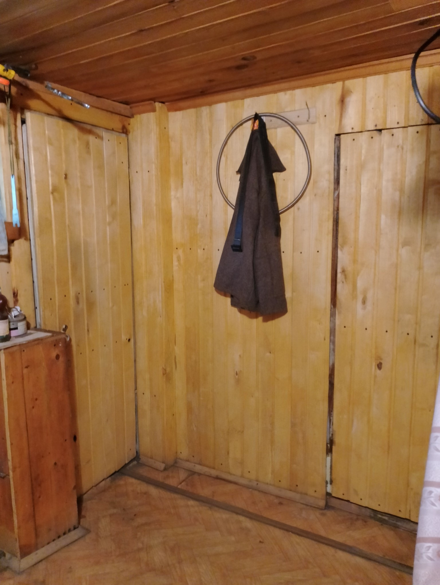 Изнутри домик обшит вагонкой.